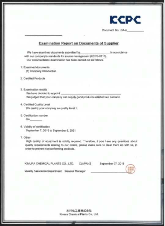 海外での製作や工事業者についても、製造部・品質保証部が技術評価および品質評価を実施し、認定証を発行しております。中国、東南アジア、インド等に多くのベンダーを保有しております。